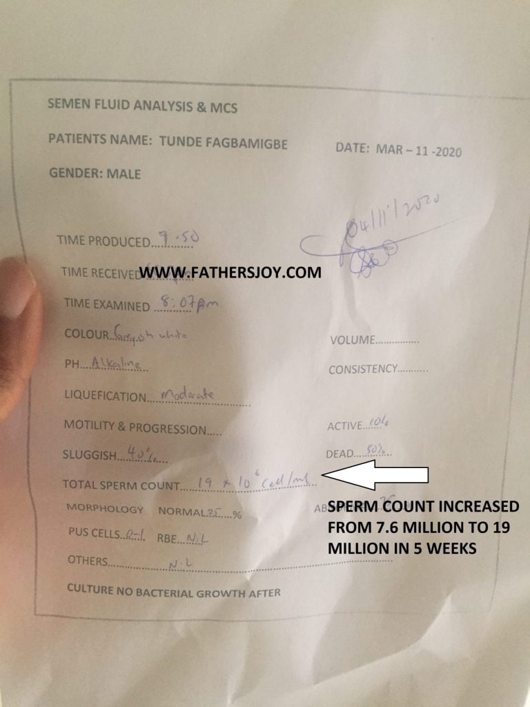 I had to buy the product for my husband when I heard that it detoxify body system and clear infections . My husband has been suffering from low sperm count for years now and it was the infection that caused it. Your product really worked for him. Thank God I didnt waste my money this time around.
